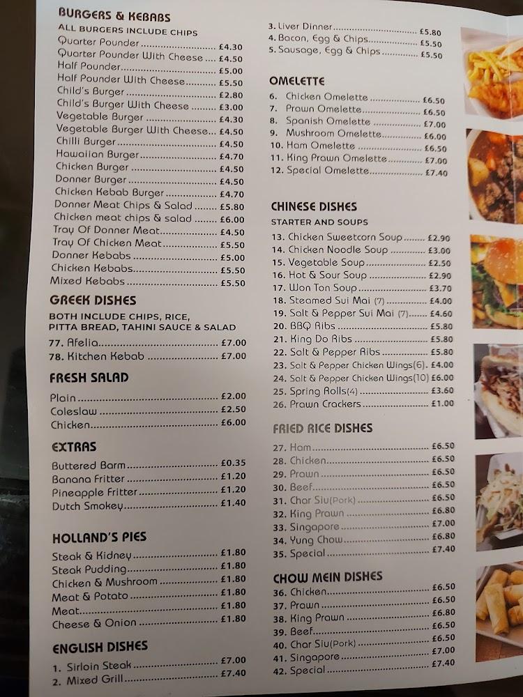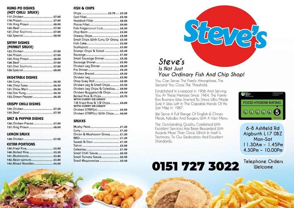 Located at 6-8 Ashfield Rd, Liverpool L17 0BZ, Steve's Fish & Chips stands as a local gem adored by tourists and university students alike. The address is easily accessible, with nearby free street parking making takeaways convenient for those on the go. The atmosphere inside is casual, welcoming diners seeking a relaxed meal experience. Service is known to be friendly, often characterized by the staff's cheerful chit-chat. Regulars rave about the fish and chips, a classic choice that has kept patrons coming back since 1986. Busy evenings often see a line of patrons eager to savor the food, with Friday night being the peak, so plan your visit accordingly. In addition to a remarkable selection of fish dishes, the establishment offers a delightful assortment of kebabs, juicy burgers, Greek options, and tantalizing Chinese dishes. The diverse offerings cater to various tastes and preferences, making it a true culinary melting pot. The restaurant is also wheelchair accessible, ensuring that it accommodates all patrons comfortably. With a menu featuring over 100 plates, including vegan options, your only challenge is deciding what to order.